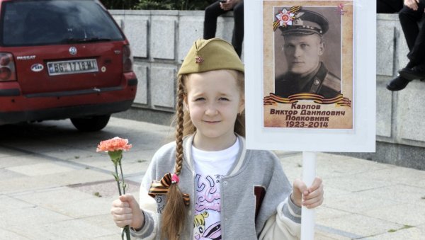 Najmlađi učesnik bio je šestogodišnji Stevan iz Beograda, koji je čvrsto stezao sliku pradede Valerija Kumarkova. Pradeda se borio na sovjetskom frontu i preživeo rat. Stevanov tata kaže da su ovde jer "ne vole menjanje istorije".