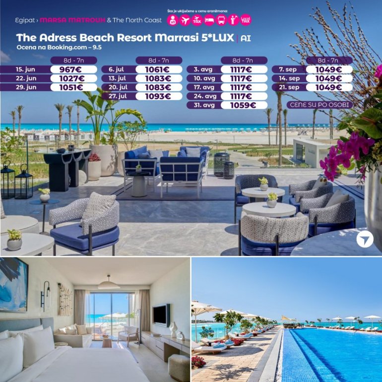 U Marsa Matruh izabrali smo ubedljivo najprijatniji i najkvalitetniji smeštaj za vaš odmor u trajanju od 8, dana u našoj organizaciji: