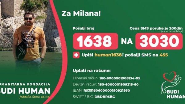 Milan više nema vremena za čekanje zbog čega planira da se prijavi za kadaveričnu transplantaciju u Belorusiji kako bi povećao mogućnost da što pre uradi transplantaciju i dobije novu šansu za život.