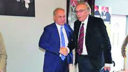 Susret u redakciji: Milorad Vučelić, glavni urednik „Novosti“ i dr Miroslav Perišić, autor teksta , Foto Arhiv porodice Petranović