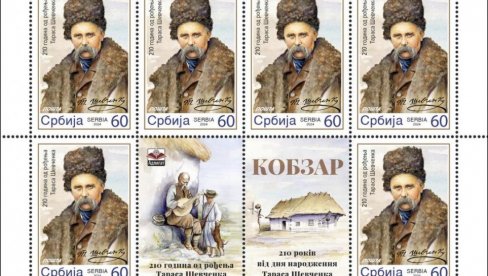 POVODOM 210 godina od rođenja Tarasa Ševčenka (1814 - 1861) jednog od najvećih ukrajinskih pesnika, pisaca, slikara i humanista, Pošta Srbije, ambasada Ukrajine i Udruženje za kulturu, umetnost i međunarodnu saradnju Adligat izdali su personalizovanu poštansku marku sa likom ovog značajnog umetnika, koji je započeo ukrajinski nacionalni preporod u 19. veku.