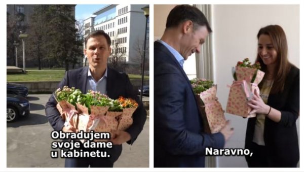 "ŽENE SU STUB NAŠEG DRUŠTVA" Ministar Mali poklonio saradnicama cveće povodom Dana žena (VIDEO)