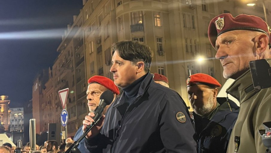 - Ja vas molim, ne zato što su prepešačili stotine kilometara, što su krenuli sa razapetog KiM da dođu do našeg glavnog grada pa da nastave na sever. Pre svega što čuvaju srpsko ime i prezime, čuvaju Srbiju već 26 godina na okupiranom KiM, da ih pozdravimo velikim aplauzom. Nije sramota pozdraviti braću i sestre koji žive tamo gde je najteže. I koji žive za sve nas kad je najteže. Hvala vam što ste sa nama. Braćo i sestre, praštajte nam što vas ne čuvamo dovoljno. Što smo se bavili koja je ulica slobodna po Beogradu, Novom Sadu, Nišu, Kragujevcu, Valjevu, Somboru.. Što smo se bavili da li đaci da uče, a studenti da polažu ispite. Što su do tad hapsili, upucavali Srbe na KiM, a gledali da razvlaste Republiku Srpsku. Praštajte nam što smo se bavili trivijalnim stvarima, tobože baveći se pravdom. Onom koju nameću blokaderi, a rušeći suštinski državu. Ana je rekla, taj njen govora je bio ključan. Sjajan. Neki kažu da ima dve Srbije. Oni i mi. Blokaderi, anti blokaderi, levi, desni. Nema dve Srbije, Srbija je jedna, nedeljiva. I blokaderi su naše braća i sestre. I mi moramo za njih da budemo odgovorni i videćete, kajaće se jednog dana. Kajaće se za svaku ružnu reč koju su uputili bilo kom čoveku koji drugačije misli od njih. Posebno će se kajati onaj koji je rekao bilo koju ružnu reč Srbima sa KiM nazivajući ga šiptarom. Vi junake da vređate, vi koji živite mirno i slobodno vređate ljude koji su svakog dana životno ugroženi. Ja vas molim da čuvamo mir. Nikada više! Nikada više kao što nam se nažalost dešavalo u istoriji da se desi da udari brat na brata, nego da bude brat za brata, da se čuvamo, da se sabiramo, da se ne delimo. Ne moramo isto da mislimo, ne moramo da navijamo za isti klub, glasamo za istu politiku ali Srbija je jedna. I ovo je jedan narod, nedeljiv, slobodarski, hrabar. Narod koji ima obavezu prema precima i dužnost prema potomcima, da im sačuvamo Srbiju slobodnu, nezavisnu, onakvu kako je zapisano u suštini našeg imena u grbu, zastavi, u otadžbini. Vas braćo i sestre molim, nađite vremena, strpljenja da se vidimo za nekih desetak dana, da se vidimo u srpskoj Atini. Na severu. Da kažemo stop separatizmu Dinka Gruhonjića i da im kažemo nisu Srbi i ostali Sloveni u Karlovcima 1848. godinu pravili Srpsku Vojvodinu da bi je vi rasturali nego da bi se ujedinili sa Maticom i bili svi zajedno od Šar planine do Palićkog jezera. Da čuvamo svaki pedalj naše zemlje. Svi zajedno! Svi ravnopravno, kao jedan. I predsedniče Republike, uz Vas smo jer čuvate Srbiju kao slobodnu i nezavisnu državu. Niste sami i nema predaje, nikada i nikome! Niko i nikada ne sme da potpiše nezavisnost KiM! To je naš zavet Nikome i nikada ne damo Vojvodinu. Čuvaćemo Republiku Srpsku u skladu sa Dejtonom i svaki građanin Srbije je ravnopravan. Apsolutno ravnopravan, a tebe Uglješa i braćo junaci veterani, kao i gospođu Dijanu Hrku molim, prekinite štrajk glađu ako hoćete da dođemo do istine, do pravde trebaju nam vaši životi, trebate nam zdravi i živi. To je naša bratska hrišćanska molba. Dosta je bilo žrtava, treba nam više dece. Treba nam radosti, treba nam pobeda, treba nam lepih vesti. Dosta je bilo kišnih dana, vreme je da sunce sine, da zora svane, da se Srbija probudi.