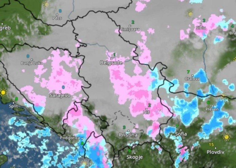 Prvi sneg u Beogradu trebalo bi da padne oko 14 časova, a onda, kako se može videti na sajtu Vreme radar, i u 19 časova.