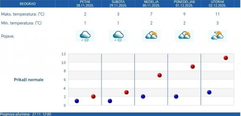 Vremenska prognoza za prvu nedelju decembra