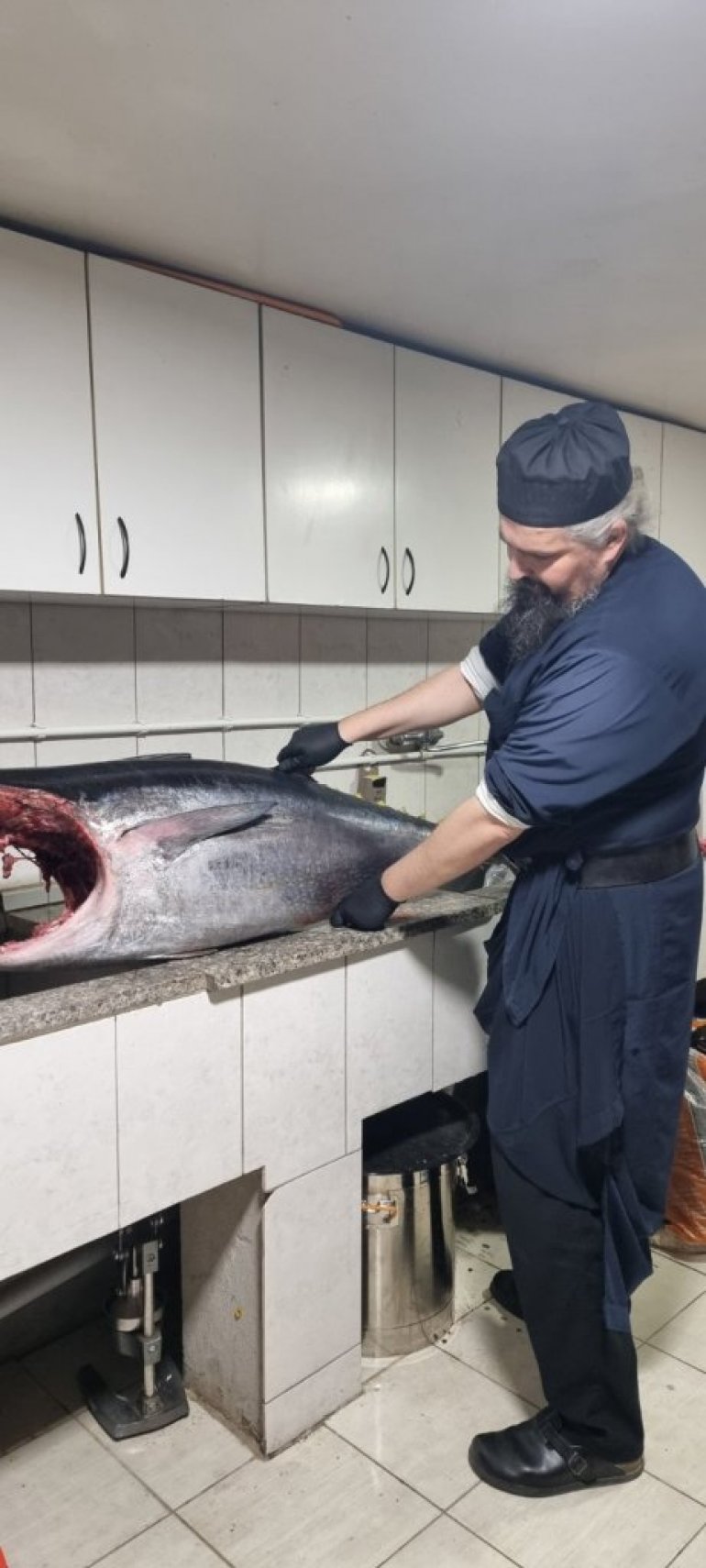 - Od našeg dobavljača nabavljamo sašimi tunu koja je već isečena, filetirana, u njoj nema kostiju, nema kože, nema masnih tkiva, kod tune se masnoća uglavnom nalazi na trbušnom delu, dok na leđnom nema i jedino što može da se desi je to neko raslojavanje u samom tkivu i to baš zbog toga što nema te masnoće koja bi povezivala. Sam proces se sastoji od toga da kada pripremamo ribu isečemo je na neke odgovarajuće debljine, komade, zatim to stavljamo u mešavinu začina koju mi sami pravimo i to po nekoj recepturi koju smo sami tokom godina, u ranijim manastirima iz iskustva videli da nam najviše odgovara. U tome stoji 24 sata, oni veći komadi stoje 48 sati a nakon toga tek kreće sam proces sušenja, mi koristimo suvo bukovo drvo i par puta dodajemo drvo od suve šljive. Uglavnom tuna stoji nedelju dana na sušenju, a ranije u manastiru Drača, kada smo pravili ekskluzivnije komade koji nisu sečeni oni su stavljali oko dva čak i tri meseca, kao šunke. Par puta smo sušili i sabljarku, ali kod nas je nema redovno na tržištu, pa je onda nezgodno da je imamo u ponudi, a da ne možemo da zadovoljimo potrebe kupaca. Planiramo da proširimo proizvodnju i pravimo riblje kobasice - kazao je arhimandrit Onufrije.