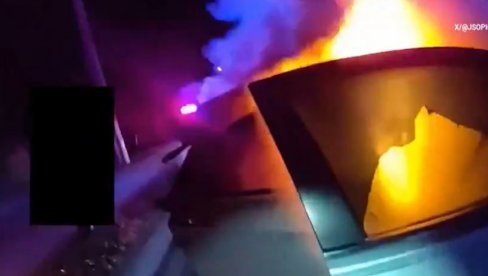 POLICIJA na Floridi spasila je ženu iz zapaljenog automobila u poslednjem trenutku, nakon što je navodni otmičar vozila ukrao drugo vozilo u kom se nalazila beba i potom se zakucao u njen automobil.