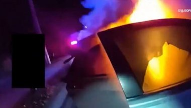 Na snimku se vidi kako policajac Almin Rešidović prilazi vozilu u plamenu i izvlači ženu sa suvozačeve strane, dok joj je kosa gorela.
