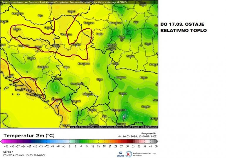 - Od srede do sledeće nedelje: Promenljivo oblačno i uglavnom suvo sa temperaturom bez bitnije promene