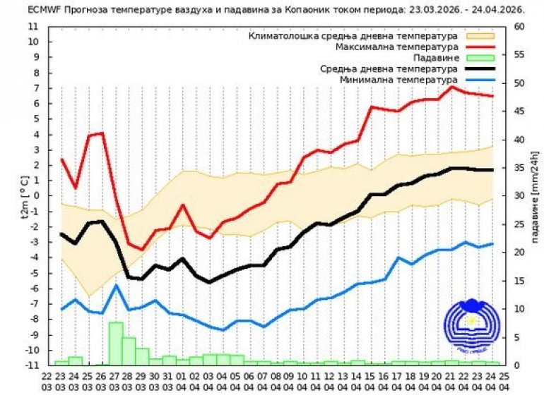 Iz RHMZ-a navode da je mesečna prognoza orijentaciona i poželjno je koristiti je uz prognozu za pet dana unapred.