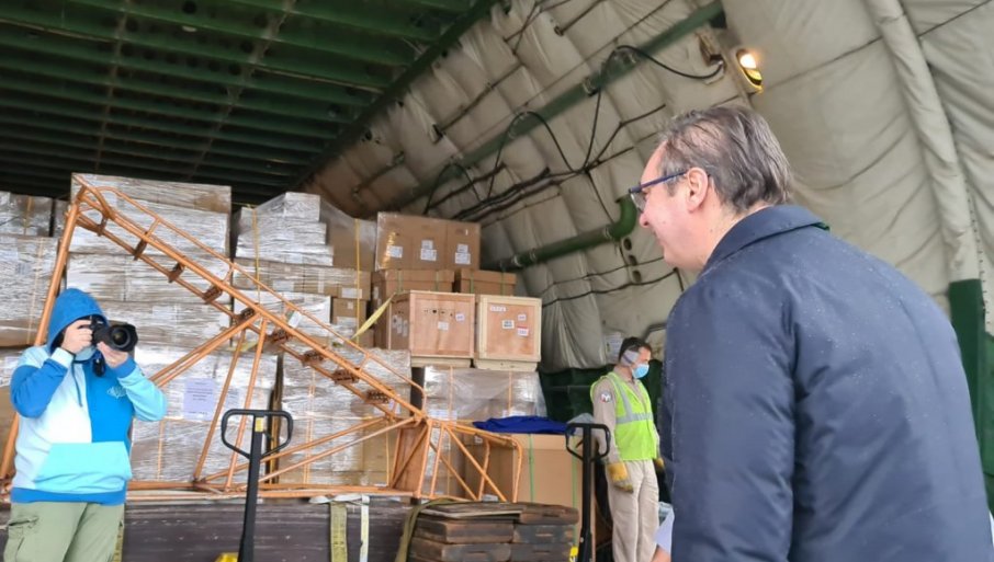 Vučić je kazao da je to pomoć koja Srbiju ne košta ni dinara, čak je i prevoz organizovao veliki prijatelj Srbije iz Ujedinjenih arapskih Emirata, šeik Mohamed.