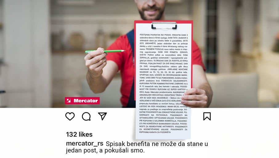 Ako i vi želite da pročitate ceo spisak benefita i informišete se o svim prednostima rada u kompaniji, imaćete mnogo više vremena, i dovoljno je samo da kliknete OVDE. A ako nakon toga budete želeli i da se pridužite Mercator-S timu, kliknite OVDE i pogledajte koje su sve otvorene pozicije.
