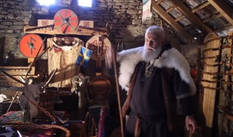 Njegov životni prostor podseća na autentični vikinški ambijent, sa mačevima, kopljima, štitovima i čak vikinškim brodom.