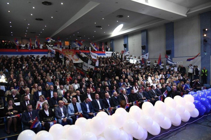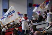 ZAVRŠEN VELIKI MITING SRPSKE LISTE U ZVEČANU: Hiljadu Srba u sali ponosno nose sprske trobojke (FOTO)