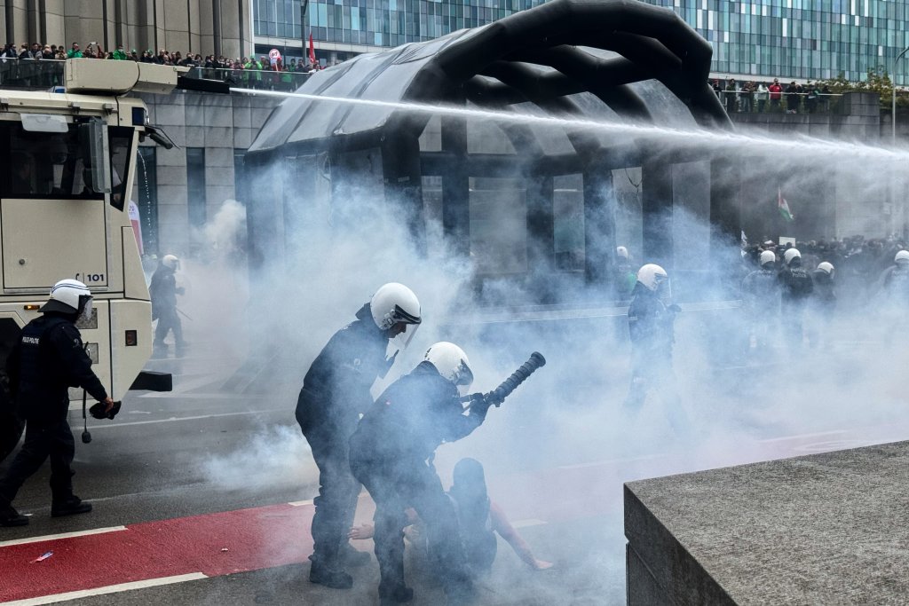VODENI TOP I SUZAVAC NA DEMONSTRANTE: Ovako se policija obračunava sa učesnicima protesta u Briselu (VIDEO)
