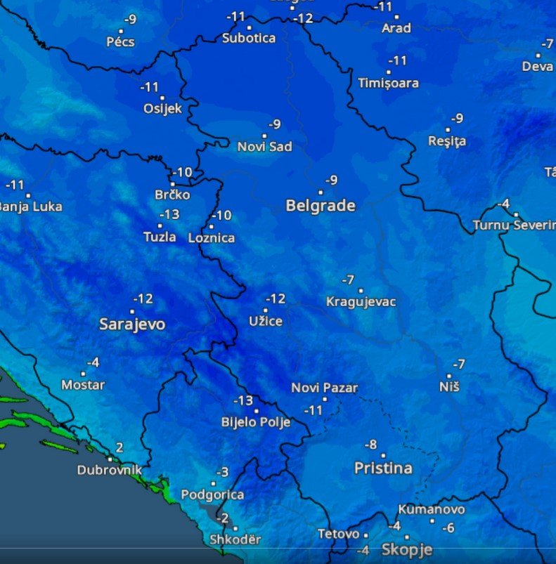 SPREMITE SE ZA LEDENU NOĆ: Cela Srbija u minusu - ovde će biti -16 stepeni (MAPE)