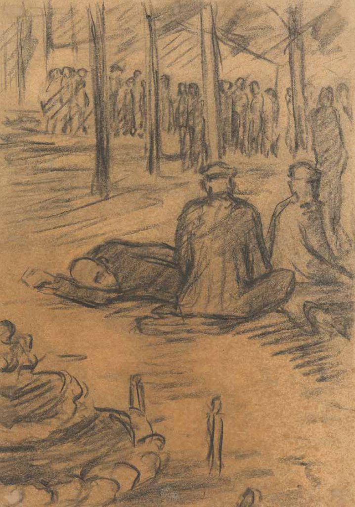 Miloš Bajić, "Odmor pred barakom", 1944.