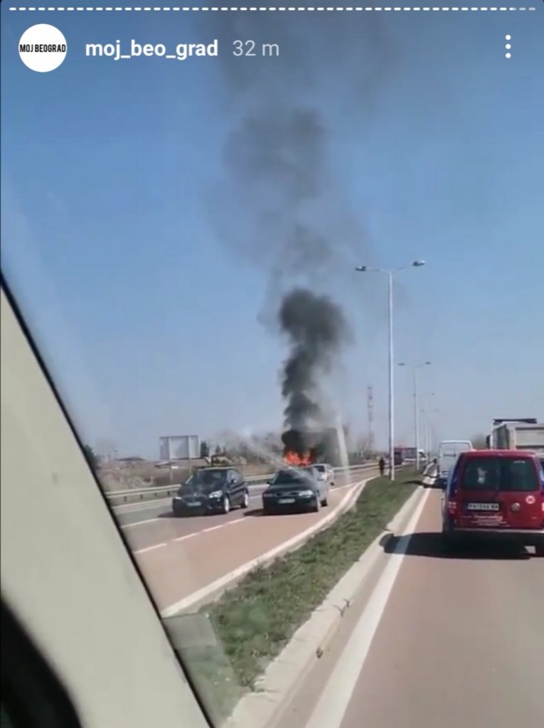 GORI NA PANČEVAČKOM PUTU: Kamion se zapalio nasred kolovoza (FOTO)