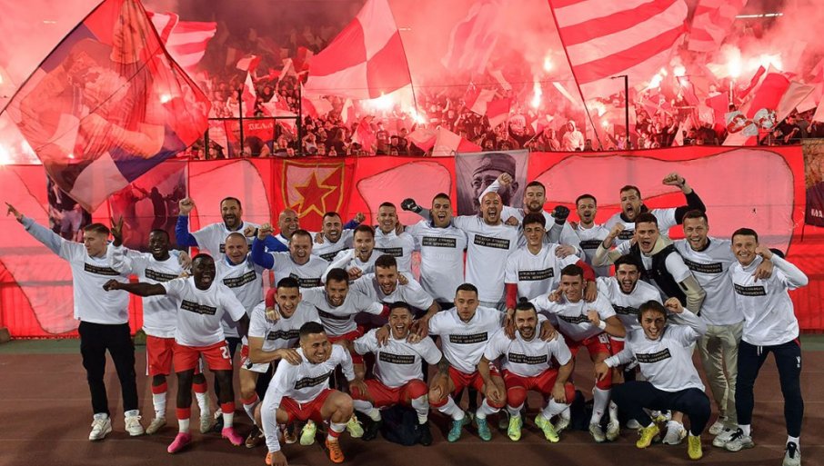 FUDBALERI Crvene zvezde osvojili su novu titulu šampiona Srbije. Oni su posle meča otišli ispred severne tribine, a na sebi su imali majice sa moćnom porukom.