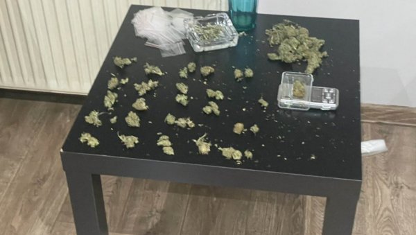 Policija je u iznajmljenom stanu u Mirijevskom bulevaru zatekla osumnjičene koji su, kako se sumnja, pakovali biljnu materiju nalik na marihuanu za dalju prodaju i tom prilikom pronađeno je oko 900 grama ove materije i vagica za precizno merenje.