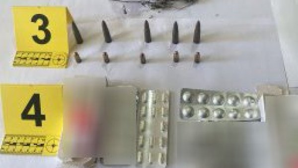 Prilikom pretresa njegove kuće, pronađeno je 554 grama marihuane, 51 tableta sa liste psihoaktivnih supstanci, kao i pet puščanih i pet pištoljskih metaka.