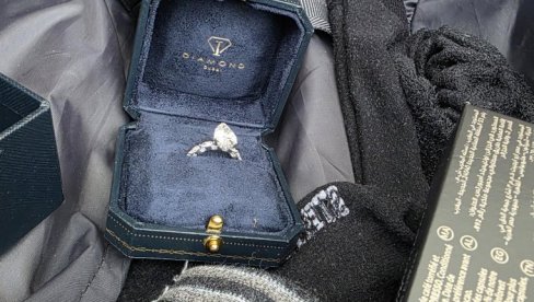 Dijamantski prsten u originalnom pakovanju sa fakturom, pronađen je među garderobom u koferu putnika.