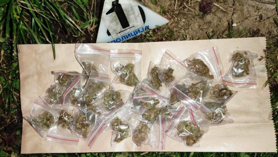 Daljim radom, u blizini škole, pronađena je sakrivena kesa sa 25 kesica marihuane, koju je, kako se sumnja, tu ostavio osumnjičeni.
