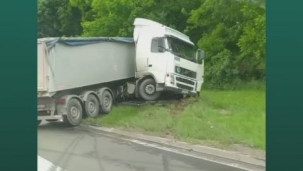 Naime, prevrnuo se šleper, iz kog curi nafta.