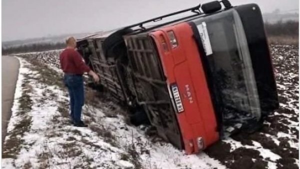 NA putu između sela Jovanovac i Biljeg u opštini Merošina, došlo je do prevrtanja autobusa prevoznika Niš Ekspres.