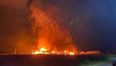 Na snimcima se vidi kako se požar proširio i zahvatio celu halu.
