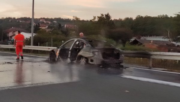 AUTO SE PRETVORIO U BUKTINJU: Kulja gusti dim na auto-putu kod Vrčina, vozilo izgorelo do neprepoznatljivosti (FOTO/VIDEO)