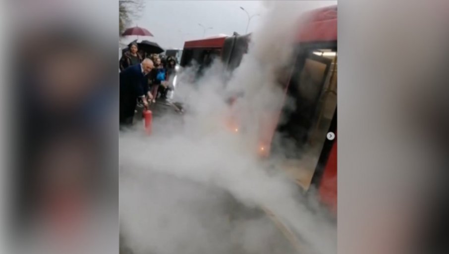 Kako javlja stranica serbialive_beograd, gust dim širio se iznad vozila, a vidi se i buktinja na točku autobusa.