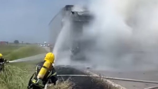 NA auto-putu kod Sremske Mitrovice zapalio se kamion, piše stranica 192_rs.