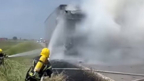 ZAPALIO SE KAMION KOD SREMSKE MITROVICE: Kabina izgorela, vatrogasci imali pune ruke posla (VIDEO)