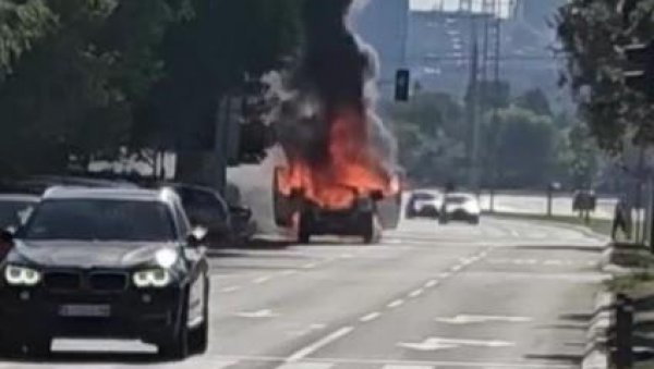 Kako se ispostavilo, zapalio se kombi u bulevaru, a vatra je već progutala prednji deo vozila.