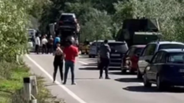 Saobraćaj je trenutno obustavljen zbog čega se formirala kolona vozila.