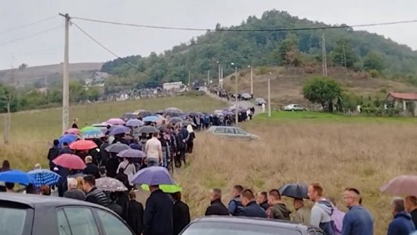 Kolona koja se uputila ka grobnom mestu je nepregledna.