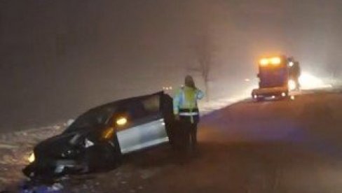 VIŠE automobila sletelo je s puta na putu Ruma- Žarkovci zb0og lizavog kolovoza, prenosi Instagram stranica 192.