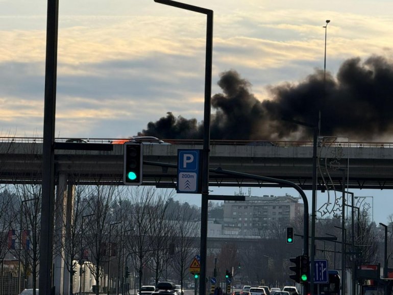 NA MOSTU Gazela u smeru ka Nišu zapalio se jedan kombi.