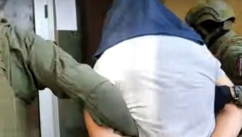 Policija je uletela u stan i uperila pištolje u osumnjičene. Oborili su ih na pod, a potom stavili lisice na ruke i uhapsili.