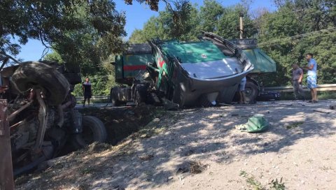 Na uznemirujućim slikama sa mesta nesreće vide sa dva kamiona, koji su se od siline udara prevrnuli, dok je jedan sleteo u jarak.