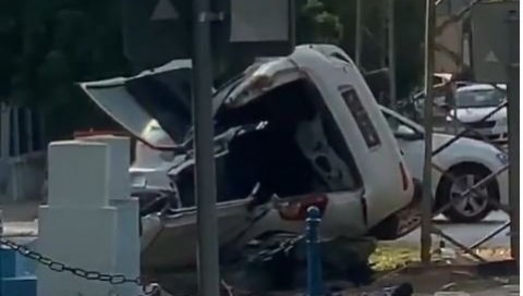 KOD NOVOG SADA POVREĐENA ŽENA: Automobilom izletela sa puta, udarila u autobus i banderu, završila u kanalu, vatrogasci sekli vozilo (VIDEO)