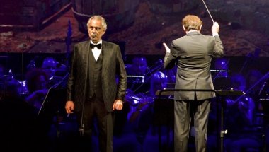 Andrea Bočeli nastupa uz 80 muzičara Simfonijskog orkestra RTS-a, kojim upravlja dirigent Marčelo Rota.