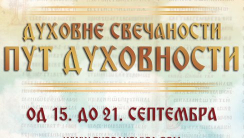 MANIFESTACIJA "Put duhovnosti", održava se deveti put u organizaciji Manastira Rakovica, Centar za kulturu i obrazovanje Rakovica i Opštine Rakovica - od 15. do 21. septembra posetioci će moći da prisustvuju raznovrsnim programima.