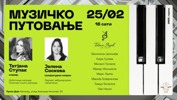 MUZIČKO PUTOVANJE: U Ruskom domu koncert Tatjane Stupak sa Jelenom Soskovom i učenicima