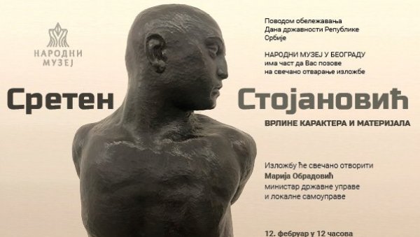 DAN državnosti Republike Srbije Narodni muzej u Beogradu obeležiće izložbom našeg velikog vajara Sretena Stojanovića.