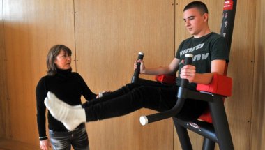 Profesorka Dragana Adžić sa učesnikom na novoj opremi, Foto I. Marinković