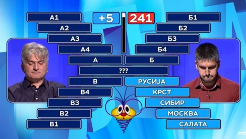 Kada je imao mogućnost da na osnovu rešenja kolone "G", a koje je bilo "Rusija", takmičar Dobrivoj Avramović je odmah odgovorio: