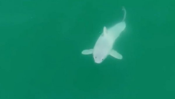 Velika bela psina siva je na vrhu i bela na dnu. Međutim, ovo mladunče koje su uočili bilo je potpuno belo.