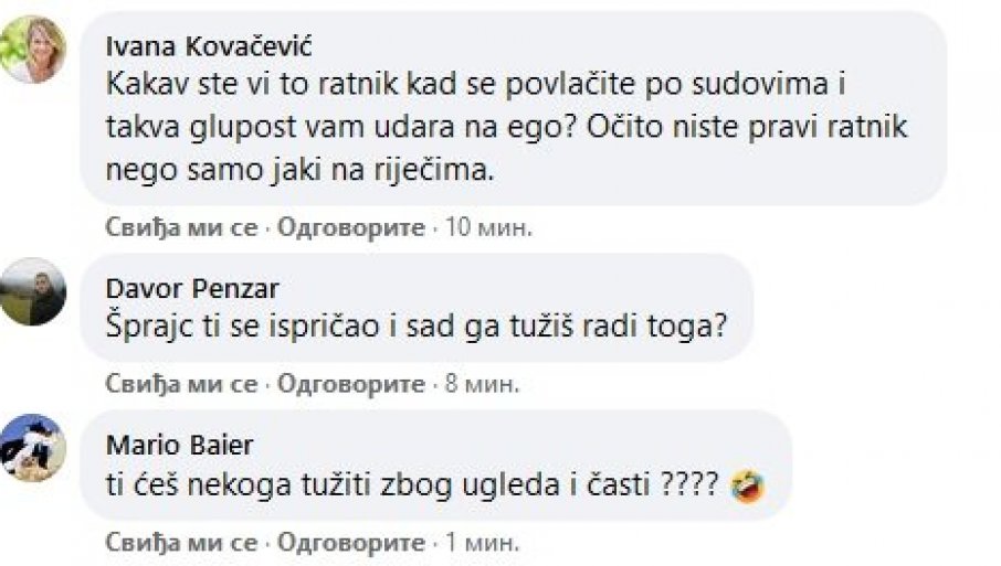 Među onima koji su pisali komentare na Glavaševu nameru da tuži Šprajca, bilo je i onih sa suprotnim mišljenjem.